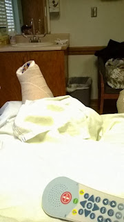 Day 13: Well there is one thing we can count on in life...happiness is fleeting! New blisters...getting cast taken off tomorrow because Dr. Rogers was in surgery today. Being kept comfortable and well taken care of! I keep saying, 'it could be worse' and it really could! I at least know what it is! Diana says that with my kind of imagination, she knows that before yesterday I was thinking 'flesh eating disease', she knows me well! Everything will be ok